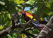 Papoušek Arakanga představuje největšího papouška na světě. Jeho délka od zobáku k ocasu dosahuje téměř jeden metr. Tento krásný papoušek má krémově bílou hlavu, sytě červenou většinu těla, ocas a křídla, která jsou navíc zdobena modrým a žlutým peřím. Jeho dlouhý zobák je perfektně přizpůsobený k tomu, aby mohl rozbíjet ořechy, které tvoří jeho hlavní potravu. Živí se však také semínky, listy a různými plody. Zajímavé je, že se může živit jedovatými rostlinami, které jsou tak toxické, že by jiná zvířata zabily. Je to tím, že tento papoušek přijímá také hodně jílu, který jedy z rostlin neutralizuje. Papoušek Arakanga v současnosti patří mezi ohrožené druhy, kvůli postupnému ničení tropických deštných lesů, které představují jejich domov a obchodování s tímto druhem. Na Kostarice jsou často kradeni z hnízda a poté prodáváni.